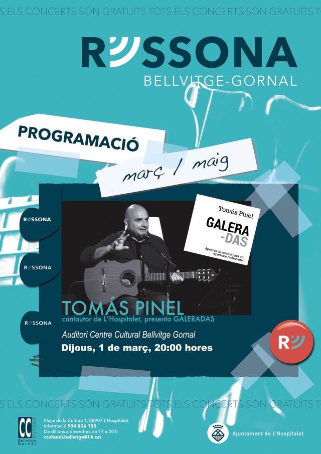 El 1 de marzo, jueves, cantaré «GALERADAS» en el auditorio del Centre Cultural Bellvitge-Gornal, en L’Hospitalet. Es un evento muy especial para mí porque será la presentación oficial de este trabajo en mi ciudad. Pero no dejará de ser un concierto de los habituales: solo voz, guitarra y conversación. ¿Nos vemos?